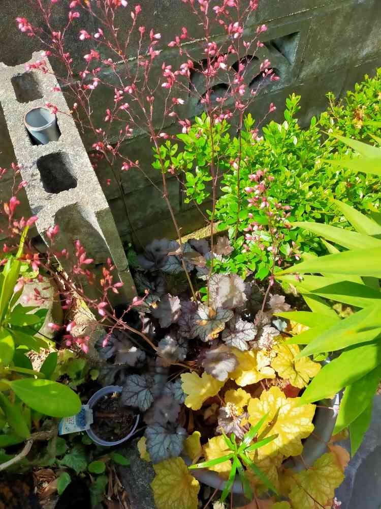今晩は、今日は実家の、庭の、ヒューケラの花超せーがのびてました。50センチは、あろうかと。手前の方は、10センチそこさこ。やはり種類に、よって違うのですね。