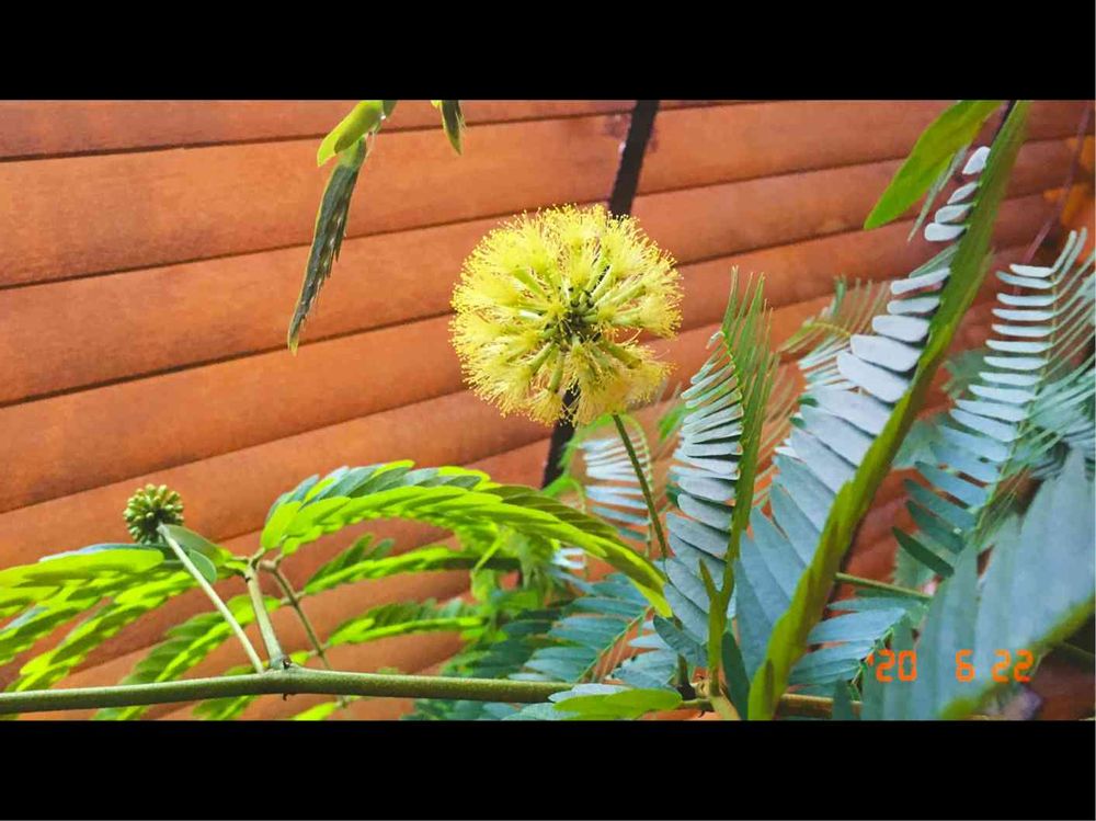 昼間に「もう咲きそうだね」「蕾がウィルスのCGみたいだね」とか言ってたらいつの間にか開花したエバーフレッシュのお花!