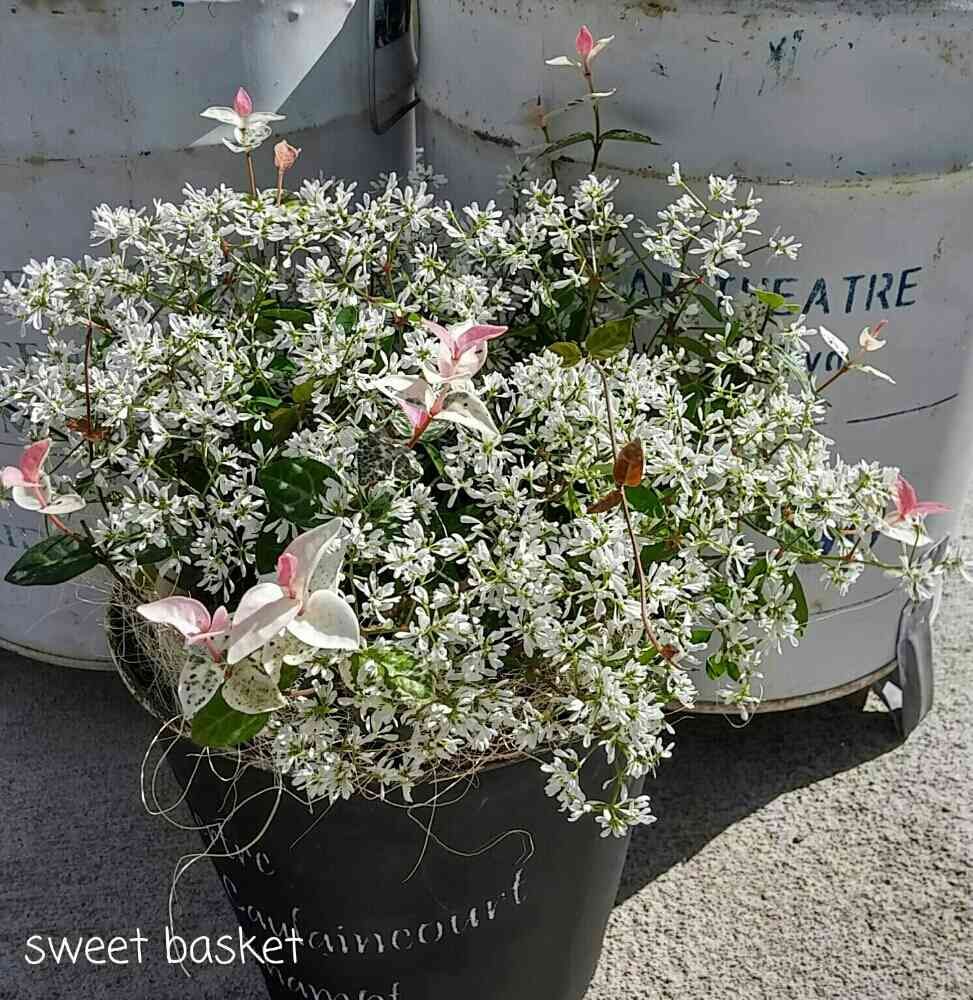 なるほどステキな組み合わせの寄せ植えですね〜〜💕うちにも両方あるのでやってみようかな😃