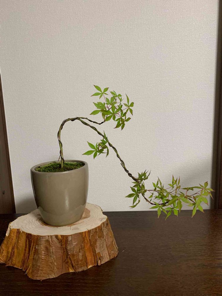 ポットに植っている姿を見ていて、無性に曲げたくなり針金かけて懸崖にして植え替えました〜‼️
