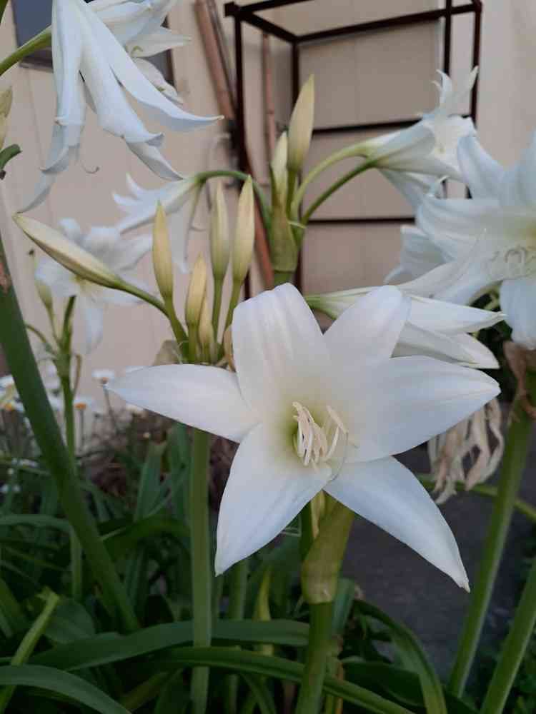 ぶんこしゃんちゃんとした名前が分かって良かったですね、ゆっちさん凄いですね物知り、蕾の出ているところが同じ所から出ていて、ハマユウですね日本のと一寸花が違って本当ユリ見たいですね、🏷️にアフリカハマユウの名前を着けないとね。勉強に成りました、有難うございます。