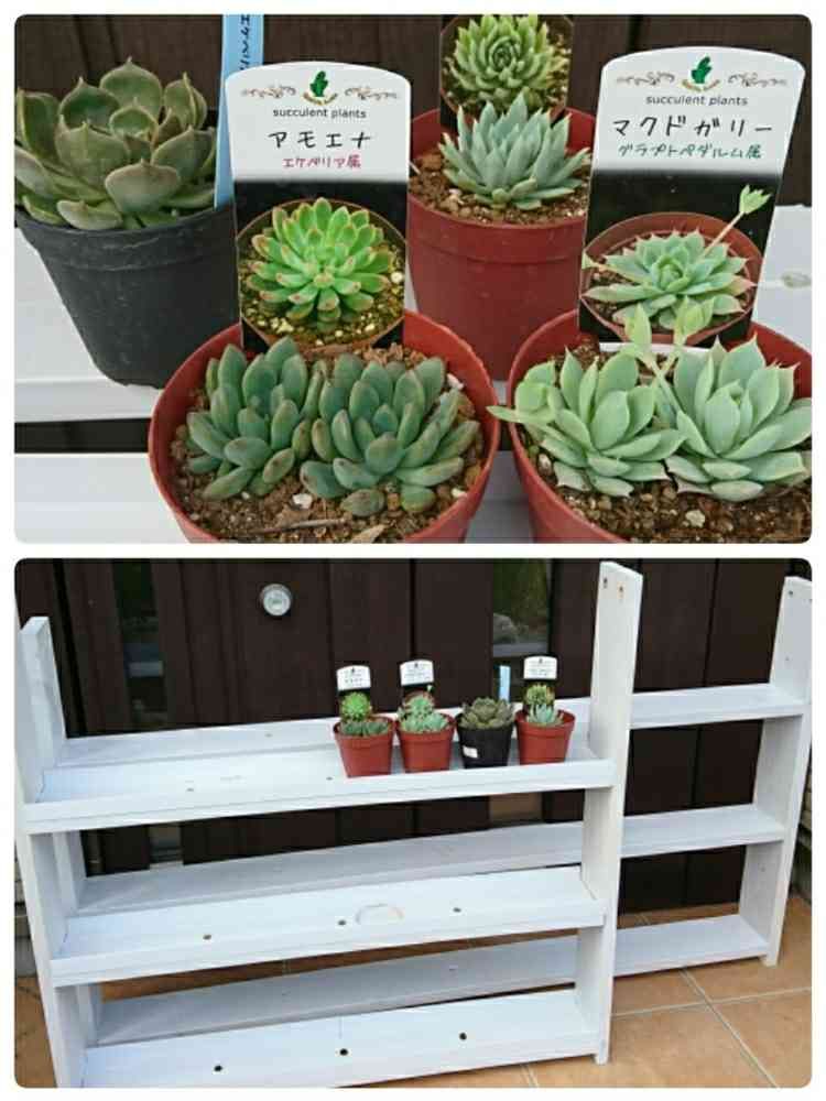 こんな素敵な棚に置いてもらえるなんて、うさぎちゃんとこの多肉さん幸せですね😄