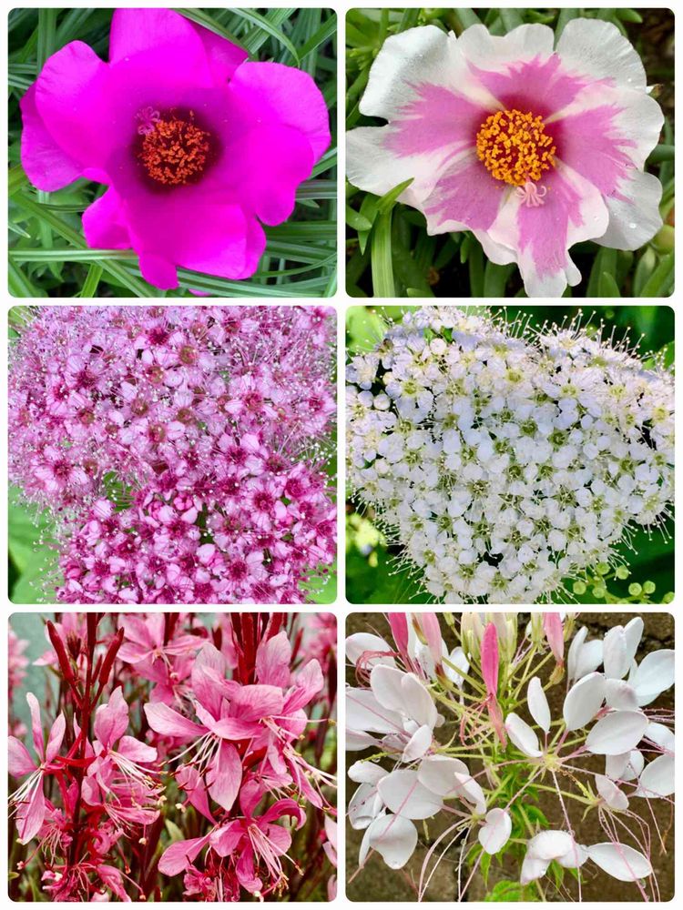 上段からマツバボタン、シモツケ、ガウラ、クレオメ