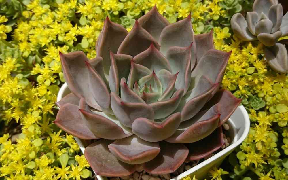 黄色いセダムのお花に、シックな色が映える〰(*^.^*)❤