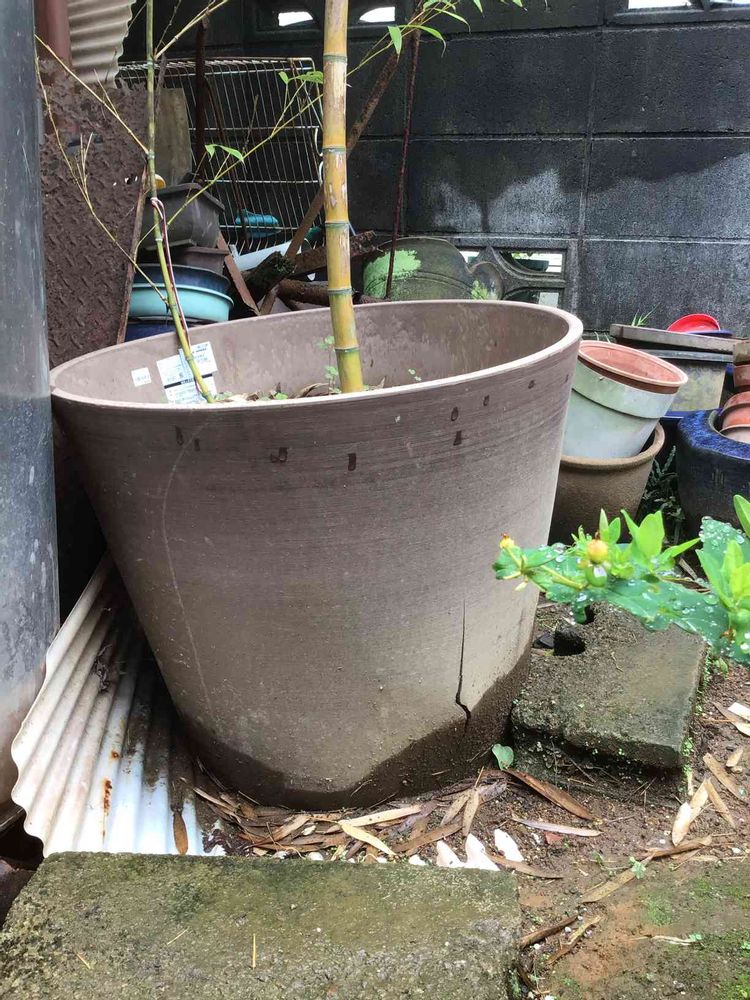そうなんですよ!よく見かける大型の孟宗竹よりは小型なので金属ではないが拳で殴っても手が折れるほど硬い鉢、そしてややツルツルしてる鉢を選んだのに徐々に膨張してついに亀裂が入りました。