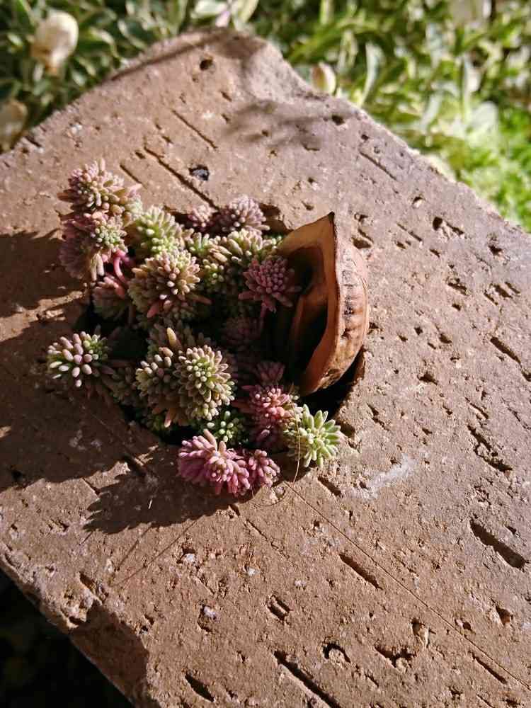 小さな庭,紅葉する多肉,レンガの投稿画像