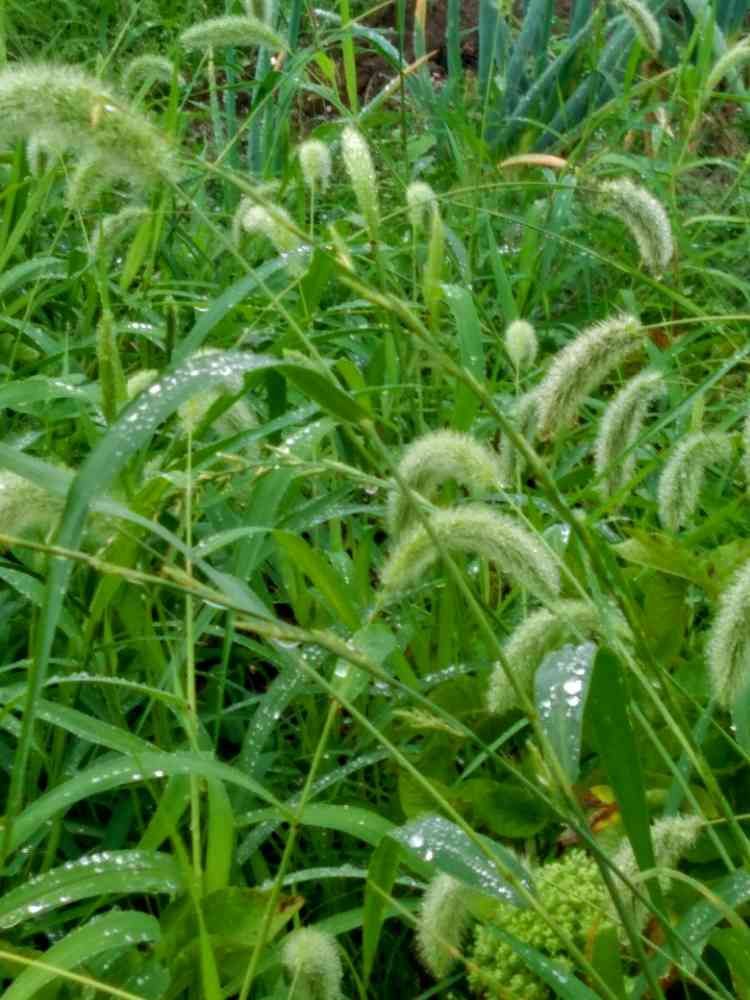 朝取れ野菜を買った帰り道、通り道の畑に、雨露に光り風に、揺れていました。