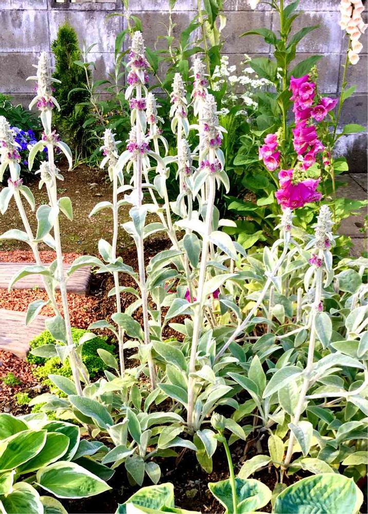 ラムズイヤーも咲きました😊雨風で倒れても晴れたらムクムク起き上がる😂