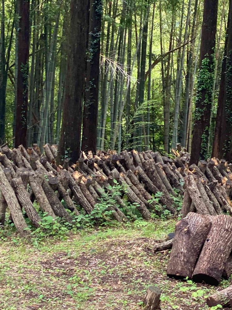 ナラ、クヌギなどの木を切り、椎茸菌を植えます。ここら辺では、道の駅などで原木を売っている時期があります。