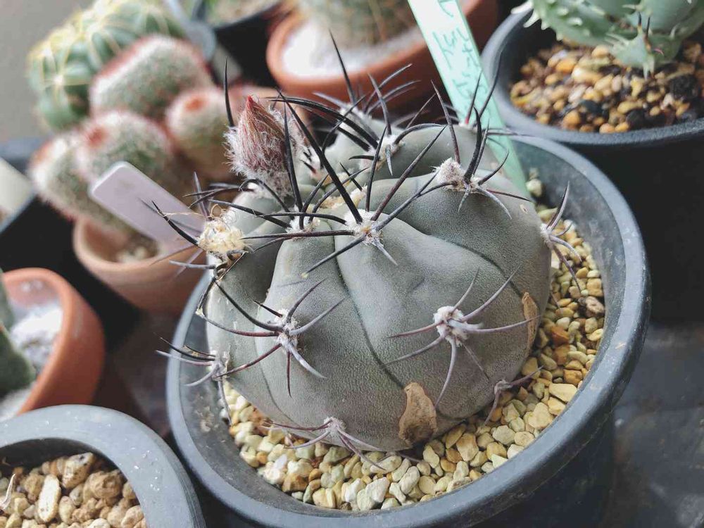 おっちゃんの買いてくれた札が全く解読できないサボに蕾がついた。かろうじて読める字でなんとなく検索してみるもヒットなし。