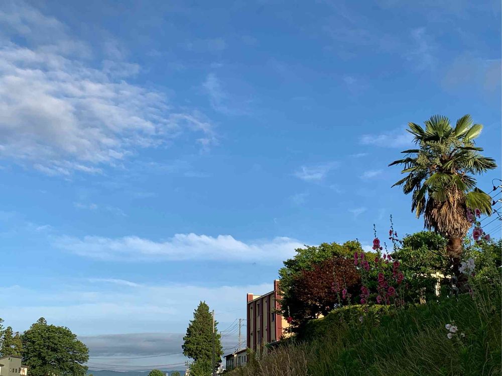 朝散歩。初めはは涼しく、終わりは暑くなってきた。。東北ですが南国ぽい。