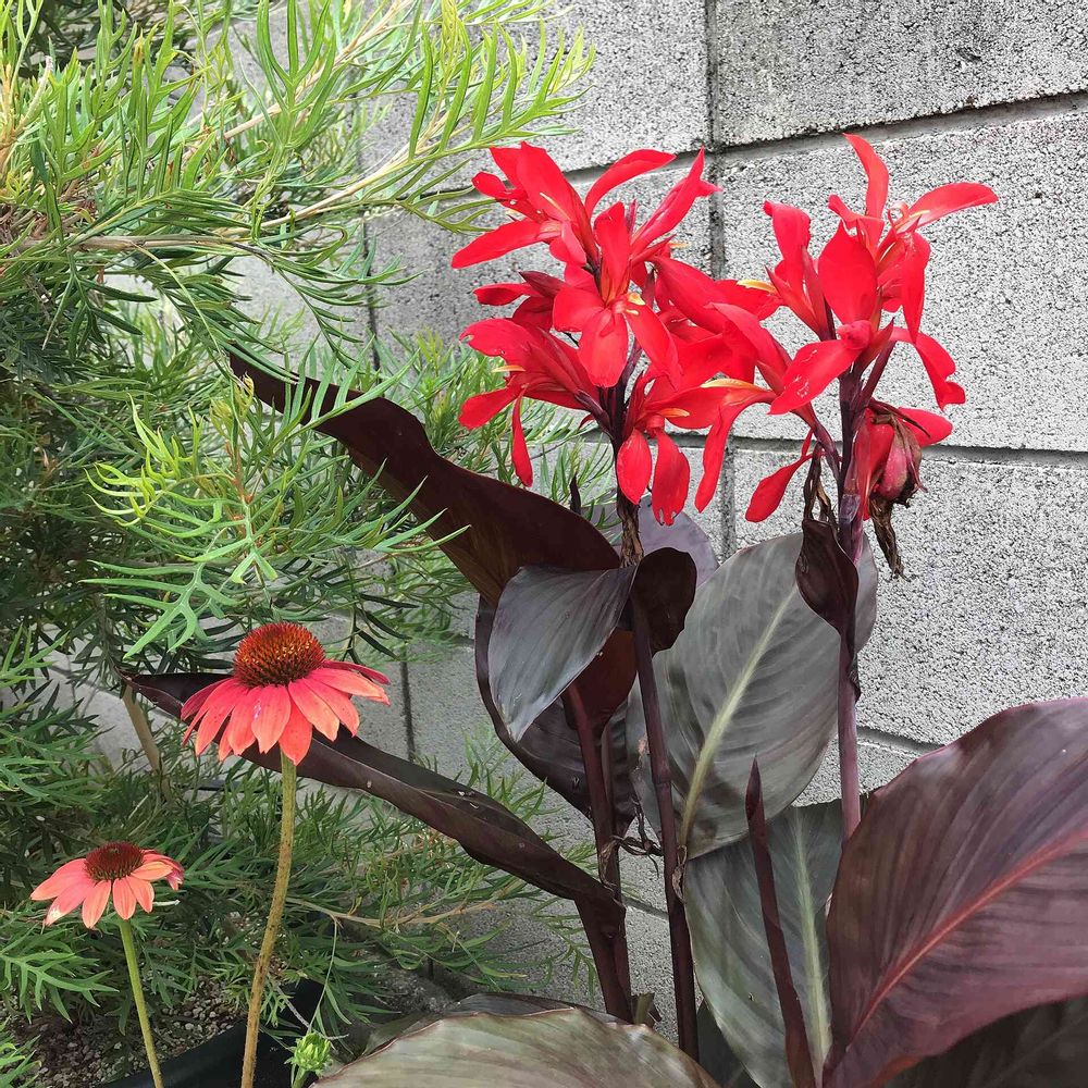 うちにもカンナ オーストラリアという、似たような情熱的な色❤️の花がいますが、、いまようやく黒い葉っぱの展開が始まったばかりです!😅