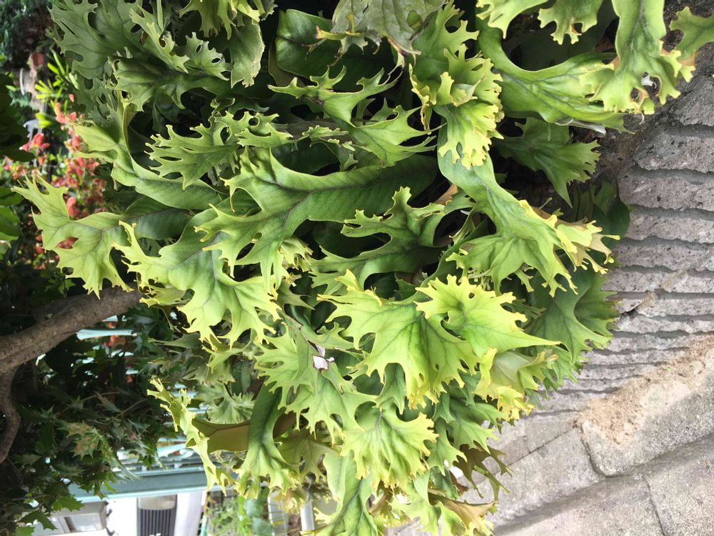 コウモリランかとも思ったのですが、今まで温室の中とかでしか見た事がなくて、こんな風に植え込みの中で見た事がなかったものですから