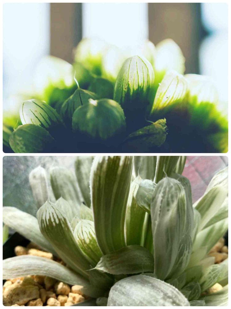リトープスから始まりハオルチアに魅せられ、窓が美しいアイススプライトを選びましたが、緑が薄くなり水分も減って薄くなっています。