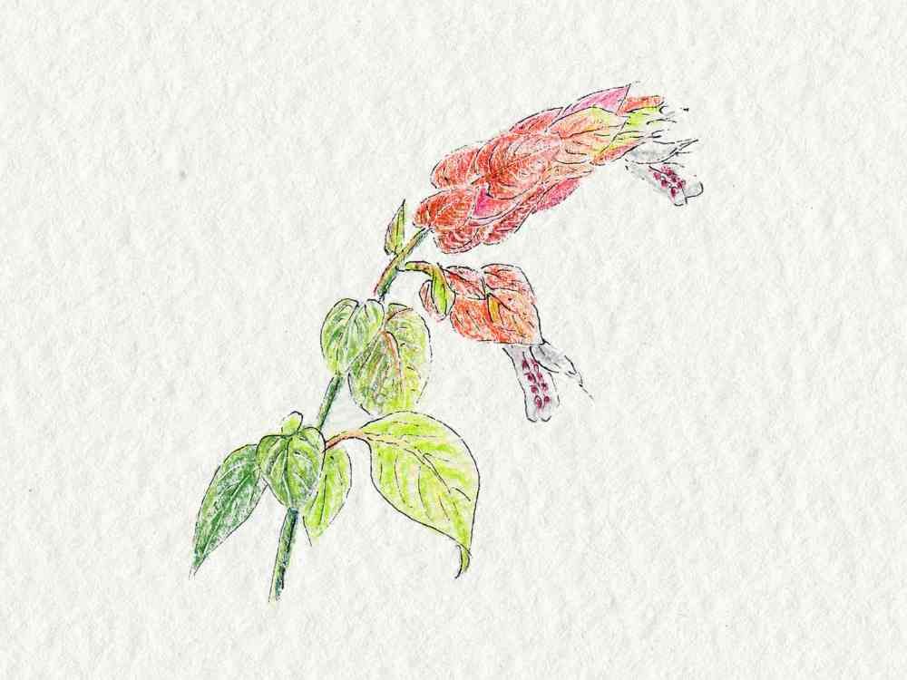 コエビソウは自宅でも咲いているのですが、イラストがお上手で羨ましいです😊🎶