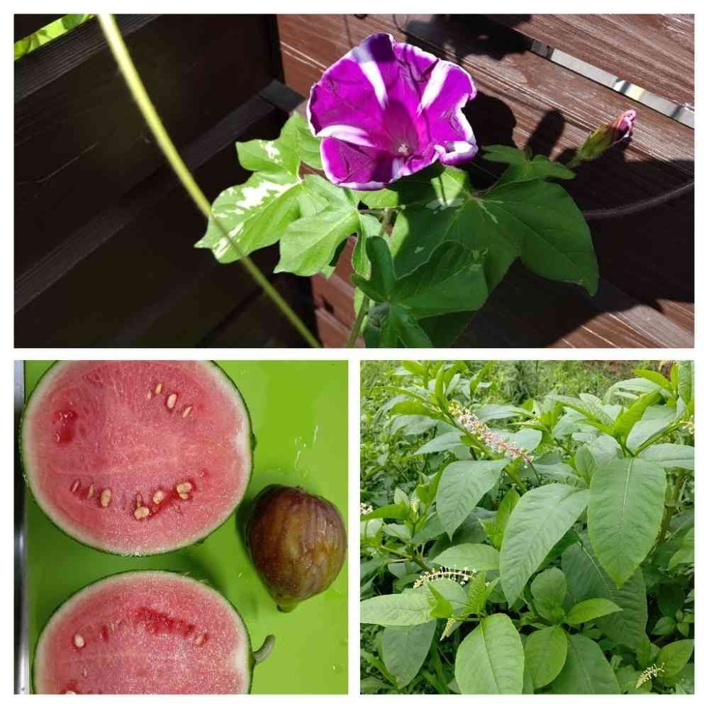 山牛蒡(やまごぼう)科。 ・学名 Phytolacca americana Phytolacca : ヤマゴボウ属 americana : アメリカの Phytolacca(フィトラッカ)は、 ギリシャ語などの 「phyton(植物) + lacca(紅色の顔料)」 が語源。液果に、 紅色の汁を含むことから。 開花時期は、 6/20 ~ 7/末頃。 ・北アメリカ地方原産。 ・花は白っぽい。 ・実は黒く熟し、いっぱいつく。 ぶどうみたいな形。つぶすと 赤紫の汁がブシュッと出る。 これを昔は赤インクにしたらしい。 有毒なので注意。 ・食用の「山ゴボウ」は菊科で、 これとは異なる。 ・別名 「アメリカ山牛蒡」 (アメリカヤマゴボウ)