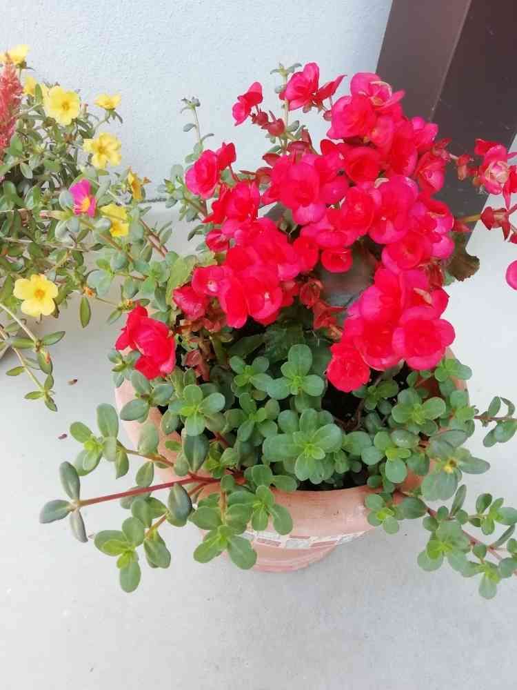 何時までも綺麗な赤のベコニアが咲いてくれて和みます🏵️ポーチュラカも苗が増えて🏵️