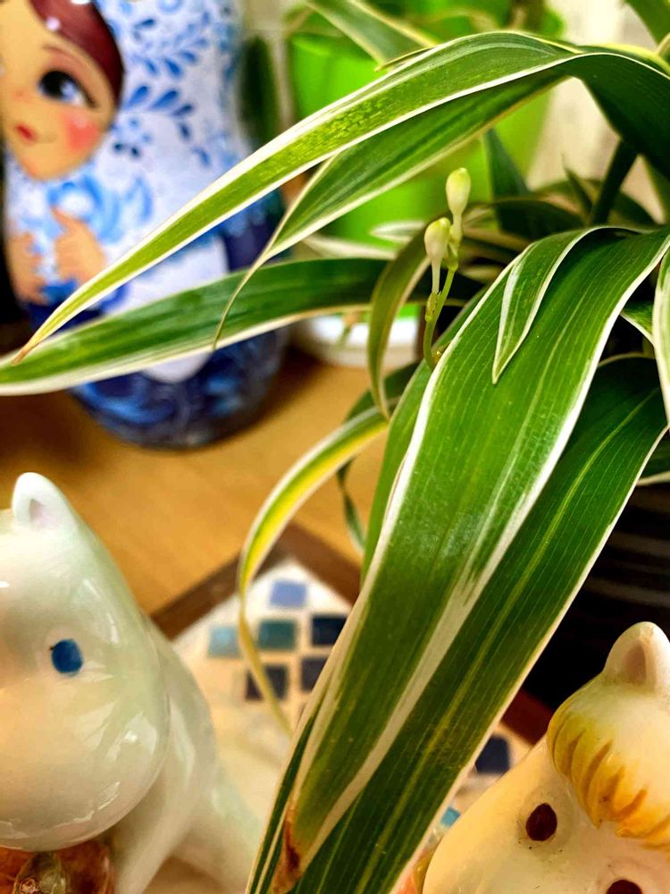我が家のニャンズたちがオリヅルランと遊ばないように祈ってねー。