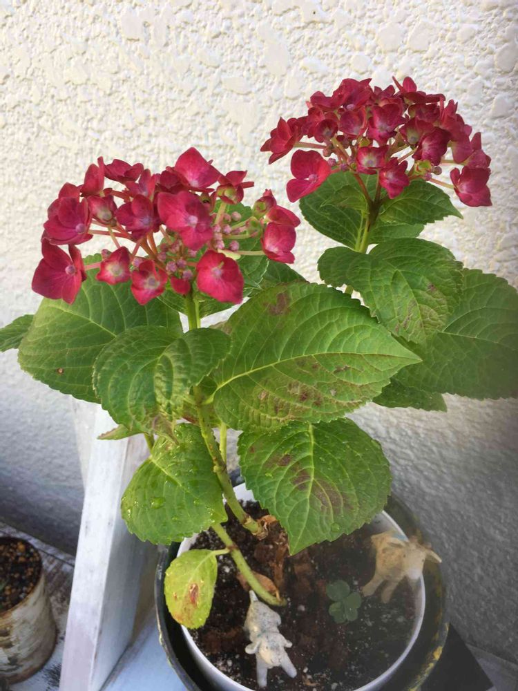 名札の写真の濃〜い紫に見惚れて買ってしまったアジサイ