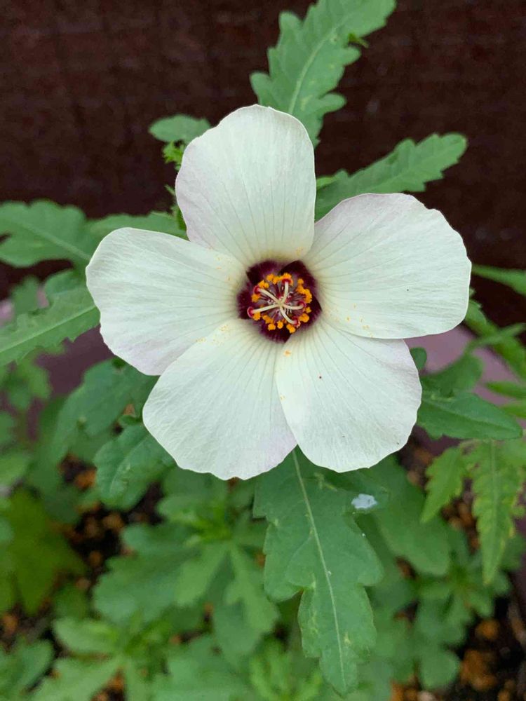鉢植えでも結構大きくなります。花は小さめで一日花ですが、後から後から蕾ができ、長い間咲いてくれます。