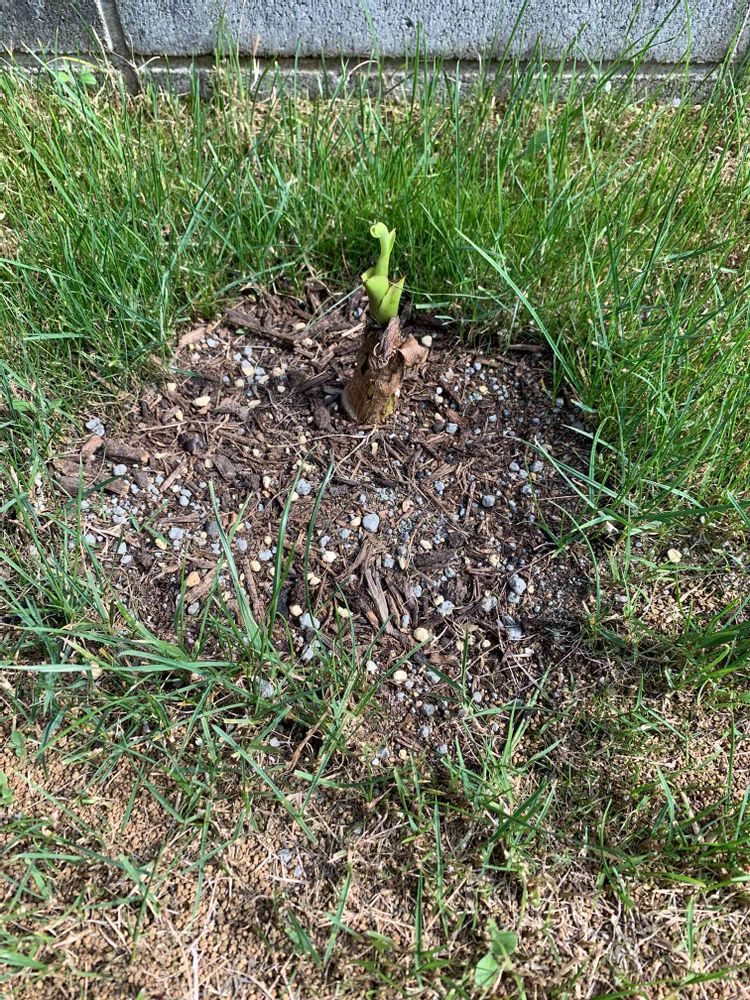 バショウの子株を植えて1カ月半が経ちました。ようやく根付いて芽が出て来ました。
