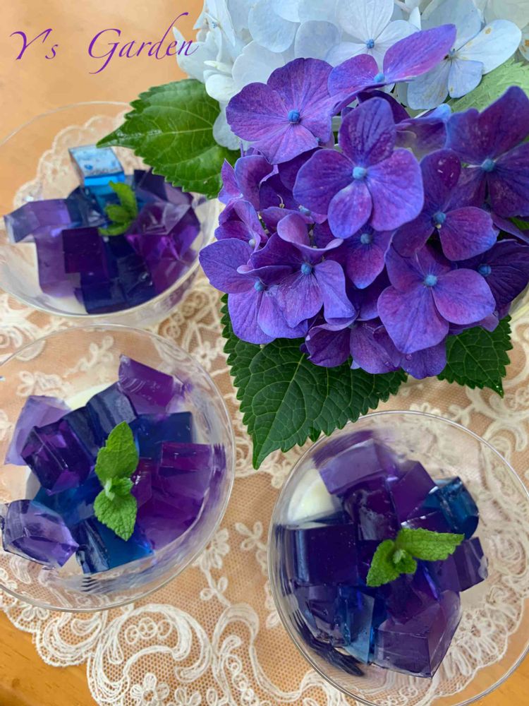 わぁ✨紫陽花と同じ鮮やかな色のゼリーがとっても綺麗ですね