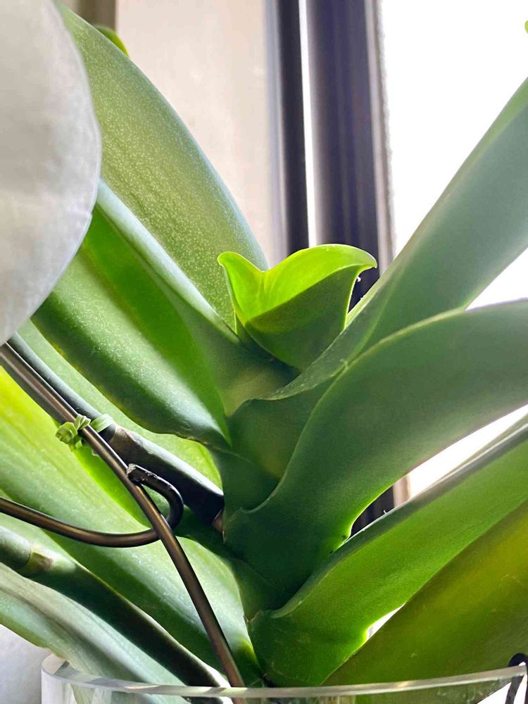 胡蝶蘭から奇形の葉が出てきました。