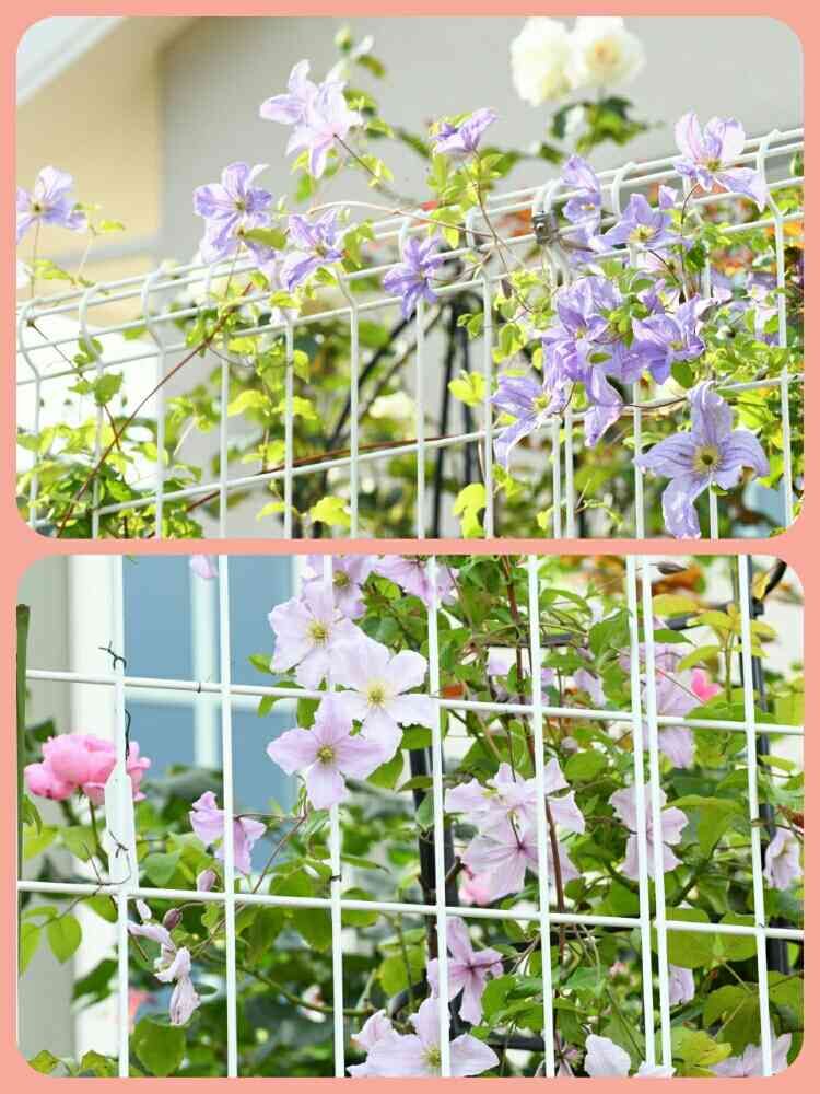今日の花は、クレマチス2種類です。バラは少なくなりましたが、中輪多花性のクレマチスで、クレマチスだけでも綺麗です💕