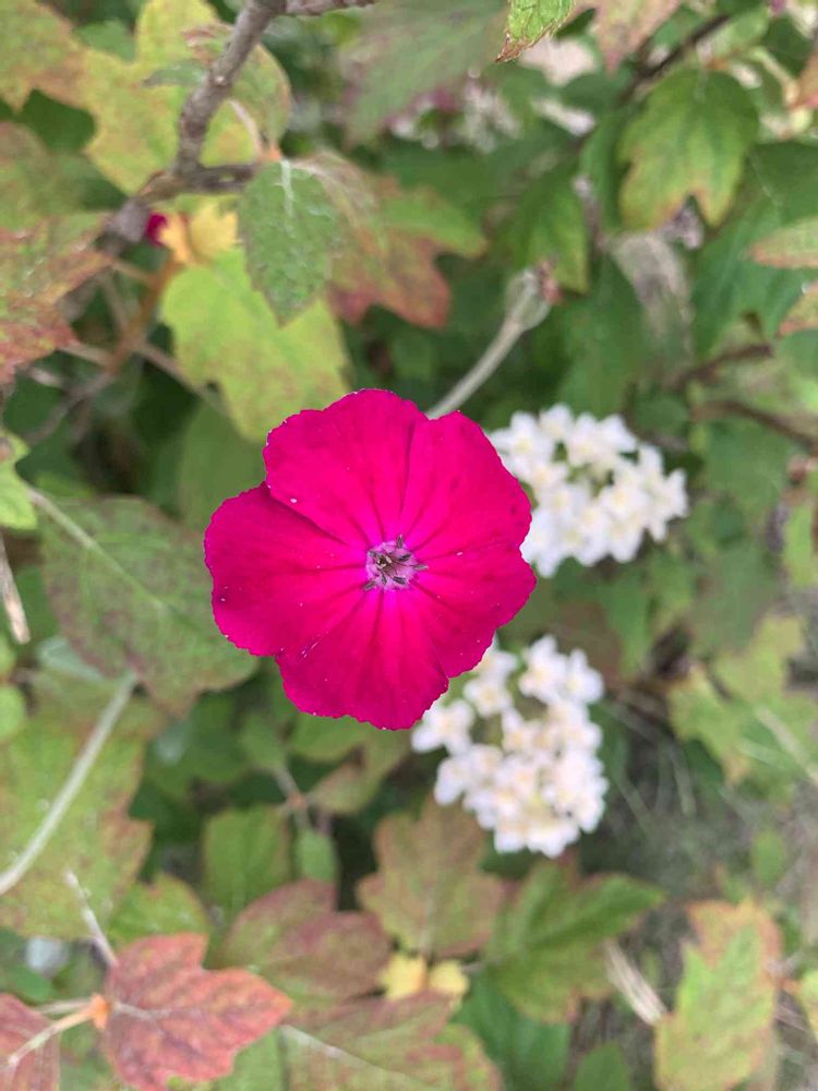 柏葉アジサイに混じってフランネル草が顔を出しています🌸鮮やかなピンクです✨