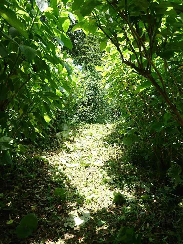 我が家の所有林へ続く小道の両脇に、8種類のアジサイが母親の手で植えられ、このような景色になりました。