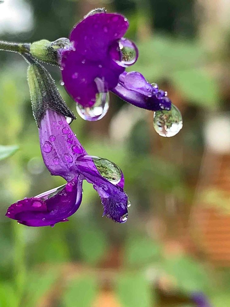 こちらも、セージのお花に今にも零れそうな雨の雫💦