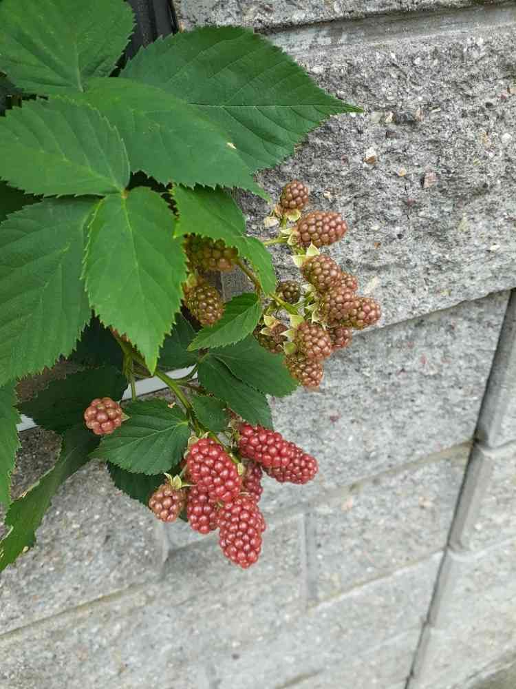 さんおはようございます🌼*・ブラックベリーかも?って候補に出たけど木苺もブラックベリーも見分け方わからないし味もわからんから、食べてもきっとわからないし見てるだけーー(他人様の家の🍓勝手に食べたら犯罪だし🙅🏻×ずっと見てるのもかなり怪しいし街中7時間グルグルまわってるヤバイ徘徊者に仕上がってます)