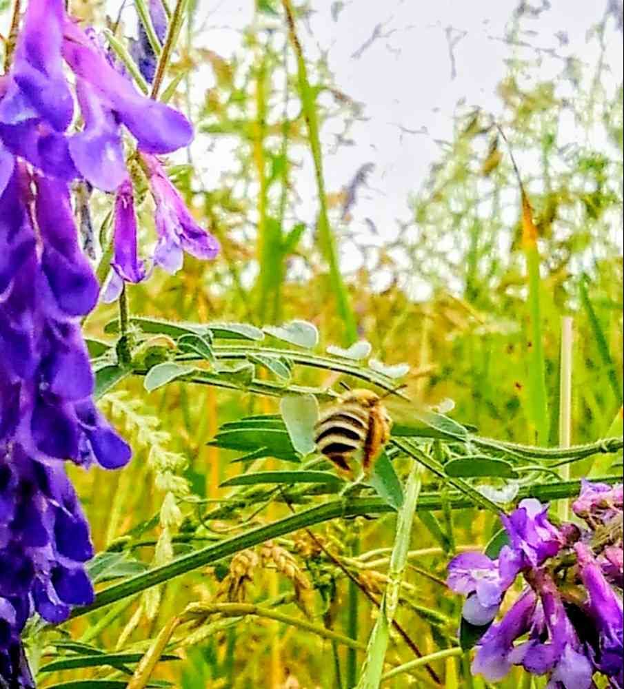 少し前に隣の空き畑で緑肥作物のヘアリーベッチを撮り 🐝ミツバチの後ろ姿が可愛かったです(*´∀`)