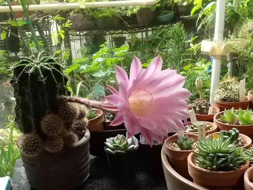 奥にあるサボテンさんも開花を