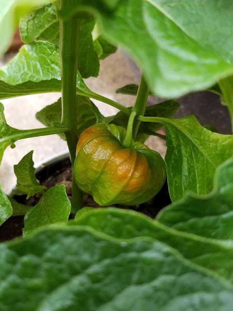 普段は隠れている真ん中辺の鬼灯がちょっとオレンジ色になっていました♡♥これから赤くなるかな