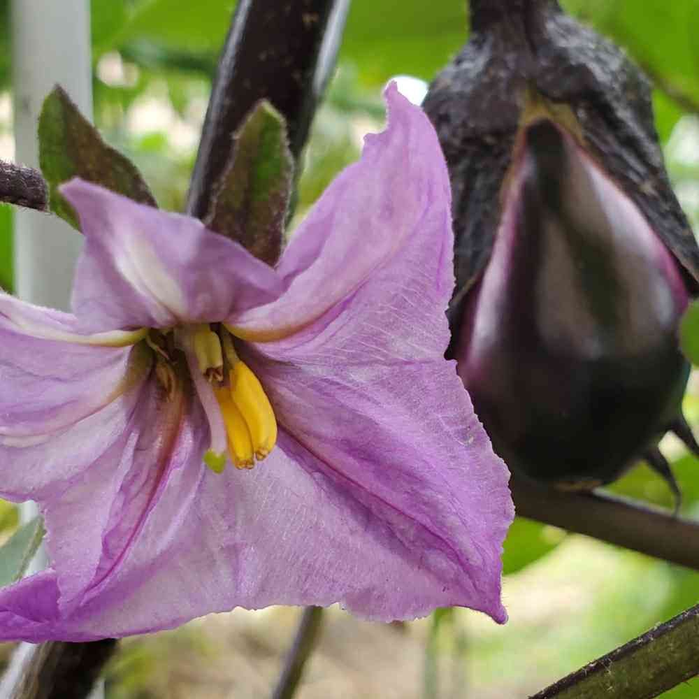 🍅や🥒🎃など黄色いお花なのに‥。🍆はナス紺色なのね✨