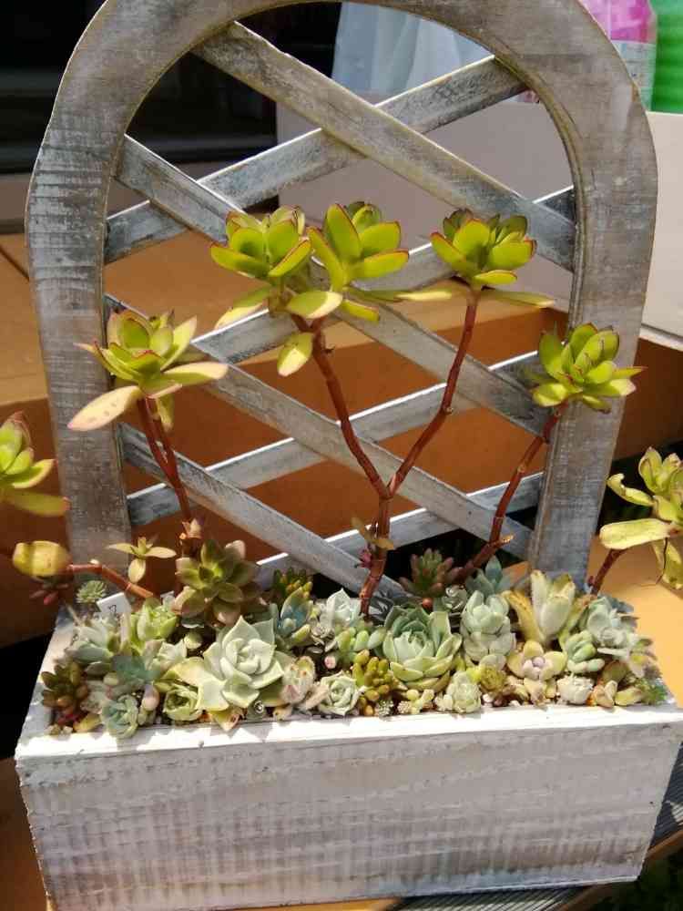 木のラックが可愛い❤寄せ植えに🙋