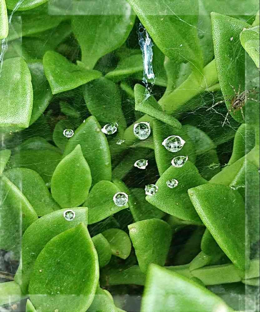 薄~く張った🕸️に雫がポツポツ✨