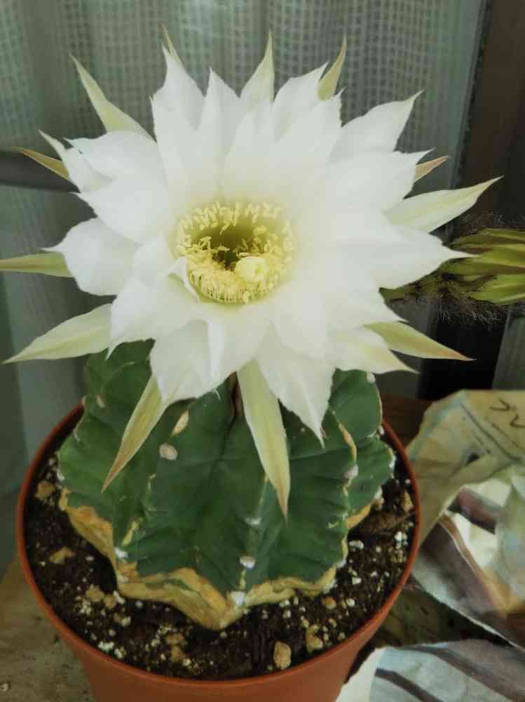 真っ白で綺麗ですねー。サボテンのお花って、薄い花弁がなんとも言えない可愛さですよね🥰。