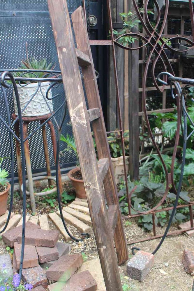 マンション一階専用庭でDIYガーデニングしています。 日当たりのいい南側の庭と半日陰の東側のL字型の庭です。 ペイントの剥がれやアイアンの錆びなど、 シャビーでカッコイイのが好みです。