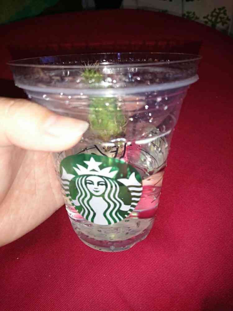 スタバのカップでダイソーのサボテンの水栽培に挑戦。