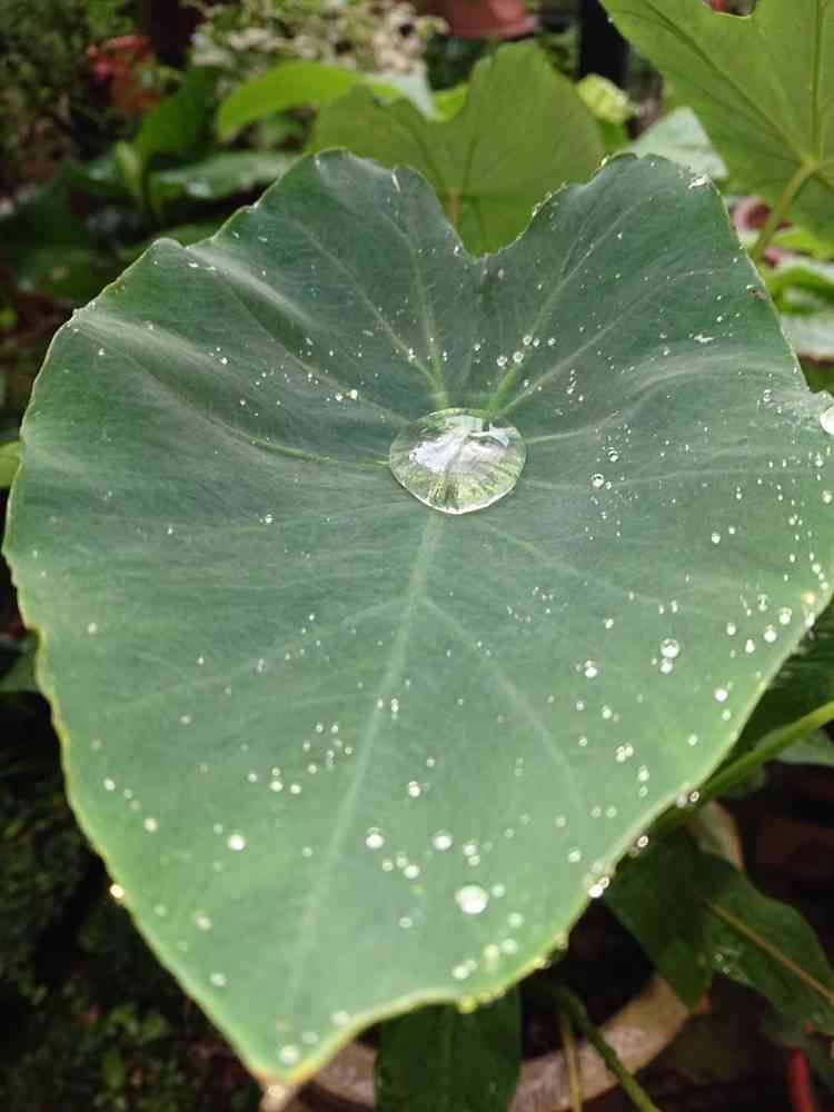里芋の葉に雨。涙かな?九州地方大雨に注意‼️です😨