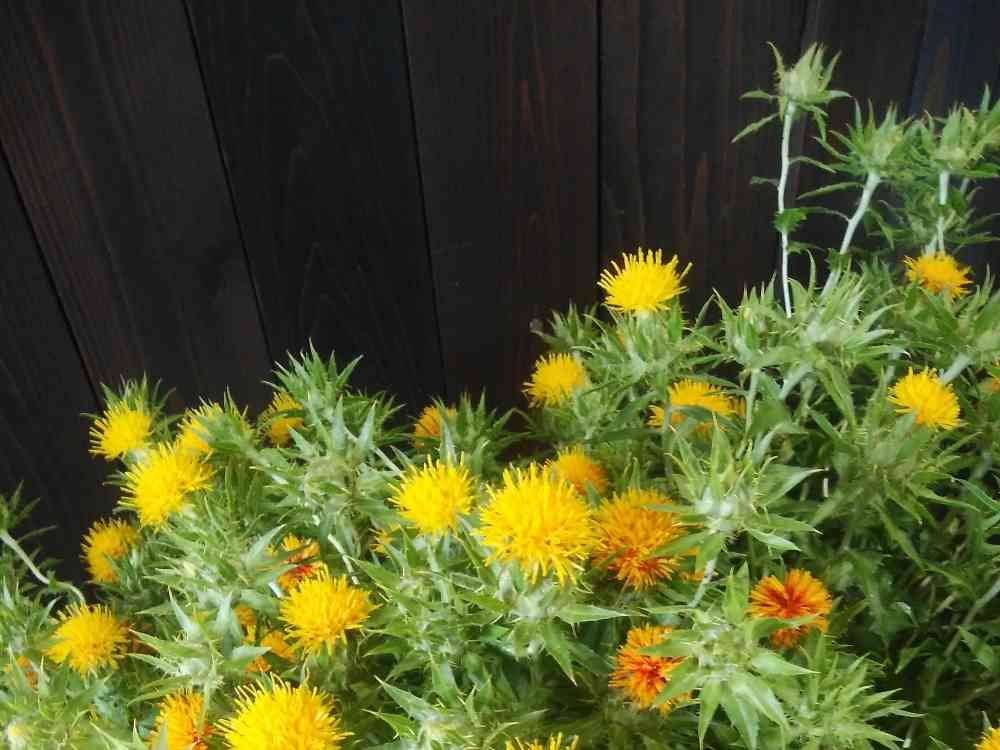 玄関には ( 県花 )の🌼 * * *紅花* * *が