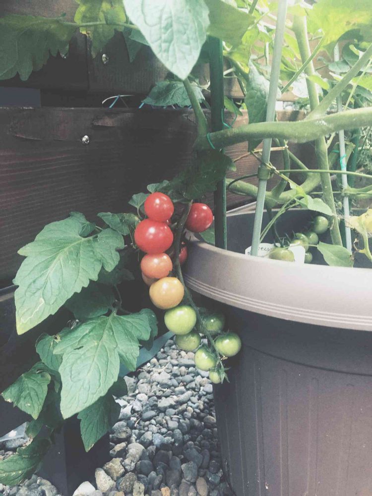 庭のミニトマトは、綺麗なグラデーションになってます❤️
