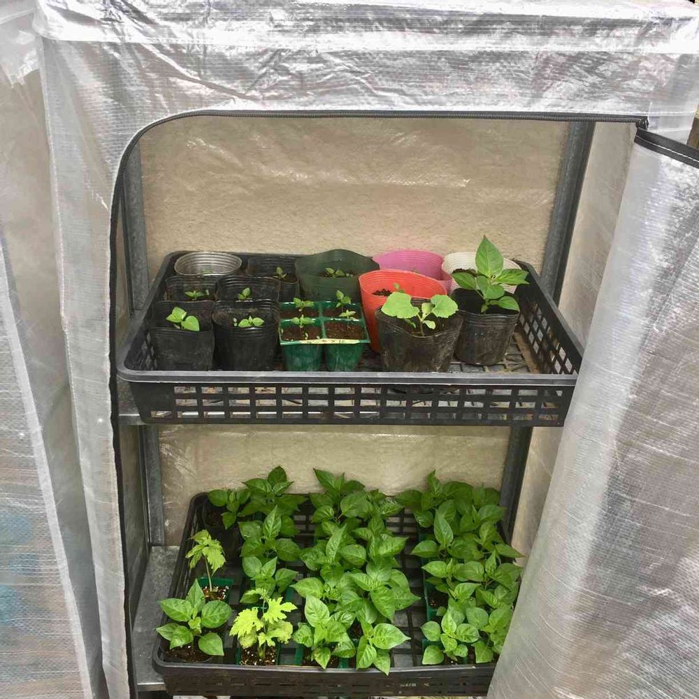 もうちょいいっぱい作れる育苗室、棚がほしいところ。。バーティカルガーデン(縦方向に展開、拡張するガーデニング環境のこと)って言葉も知ったので、気になってます。。