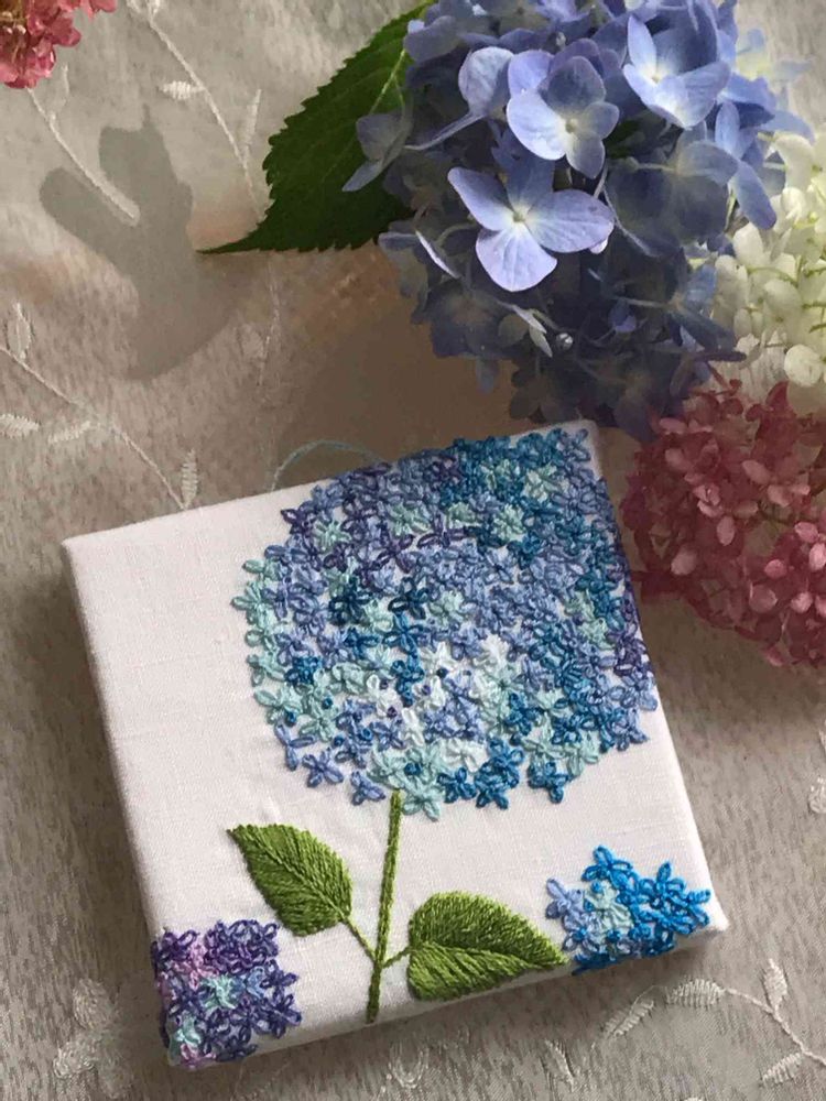紫陽花の刺繍💙💜