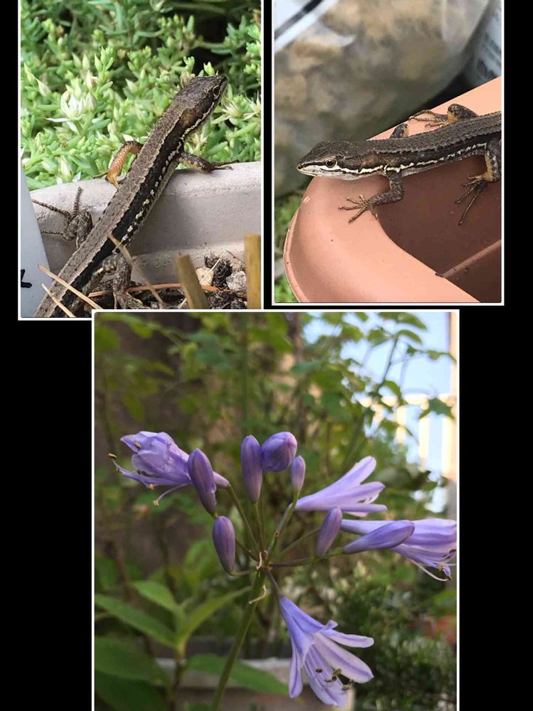 、、姫アガパンサスこんど見つけたら買いたいな〜逃げないカナヘビちやん、天敵が居なくてのんびりなのかしら、家の庭は野良ニャンコやたまになが〜い🐍が昼寝しているので危なくて|彡サッと隠れますよ〜😄