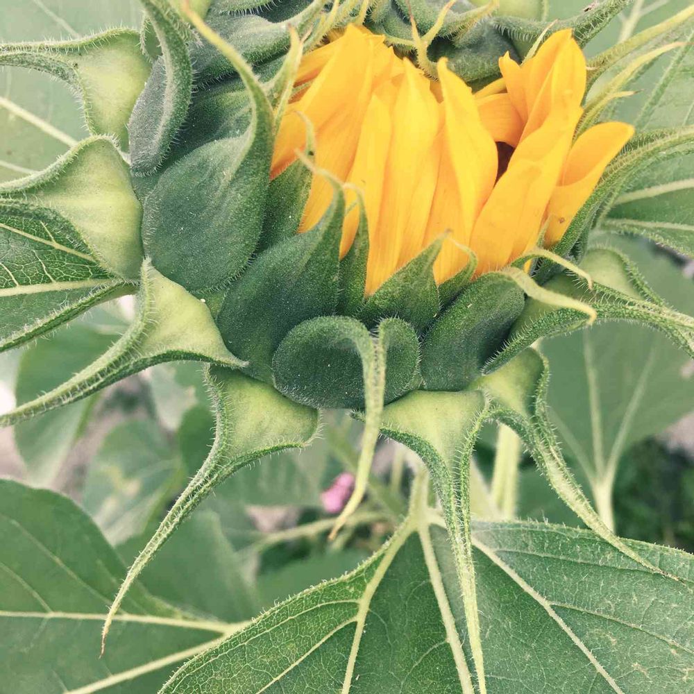 咲き始めの🌻ヒマワリ、躍動感がある写真、いいですねえd(⌒ー⌒)!