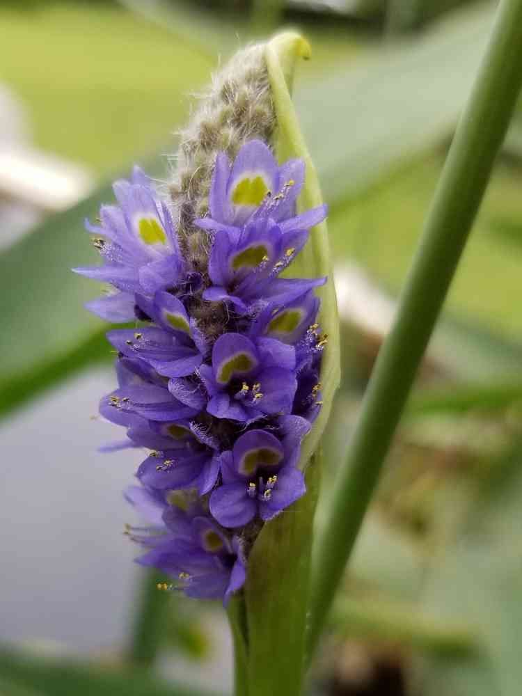 ポンテデリア は、夏~秋、池や浅瀬に生える青紫色の花穂(穂状花序)が美しいミズアオイ科ポンテデリア属の耐寒性多年草です。