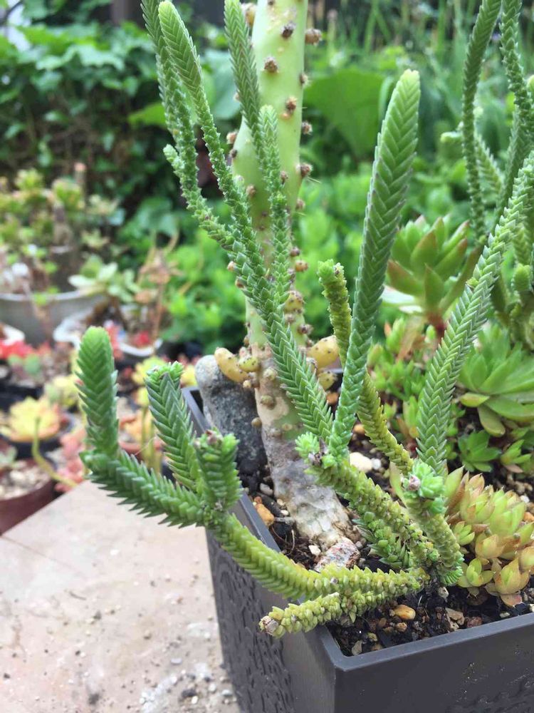 剪定しても剪定しても、にょきにょき復活。草姿を保つのがほんとめんどくさいです。クラッスラ。